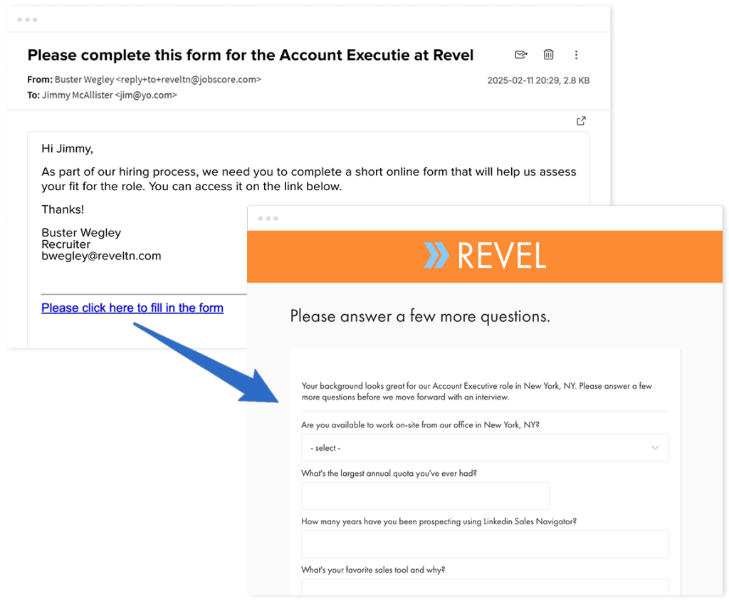 Create rules that automatically move qualifying applicants to the next stage of your process and ask them to self-schedule interviews.